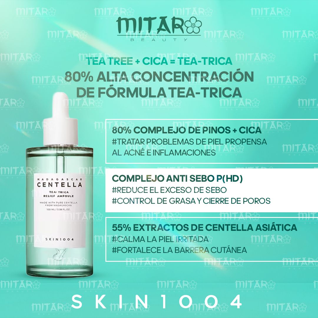- Pensado para pieles problemáticas, grasas e irritadas, el Suero para Piel Grasa y Antiacné SKIN1004 - Madagascar Centella Tea-Trica Relief Ampoule es el aliado perfecto para equilibrar tu piel y rejuvenecerla.